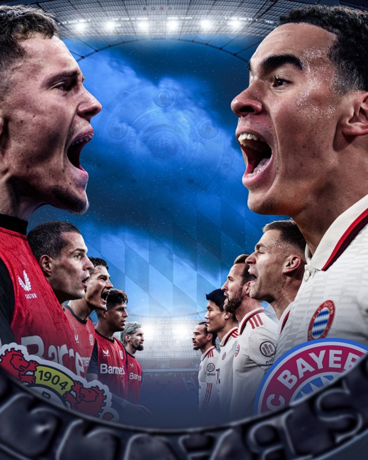 拜仁官方社媒曬出了為此役制作的海報,兩隊各5名球員出鏡,穆西亞拉、基米希vs維爾茨、扎卡。